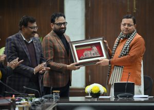 मुख्यमंत्री धामी ने सचिवालय में परिवहन विभाग के सचिव व निगम के प्रबंध निदेशक को किया सम्मानित