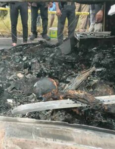 बाइक टकराकर बस के फ्यूल टैंक में फंसी, आग लगी, बस में 40 यात्री थे सवार